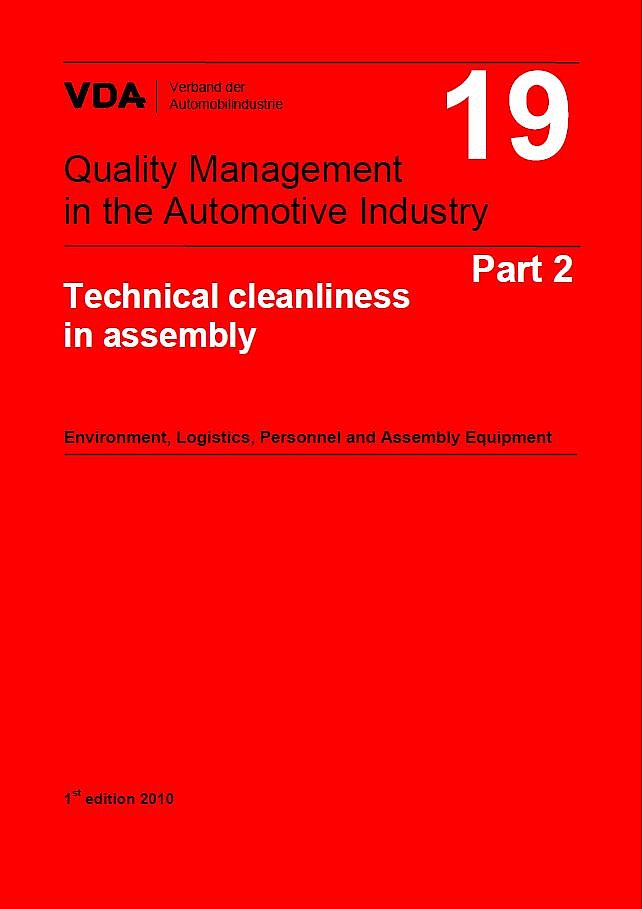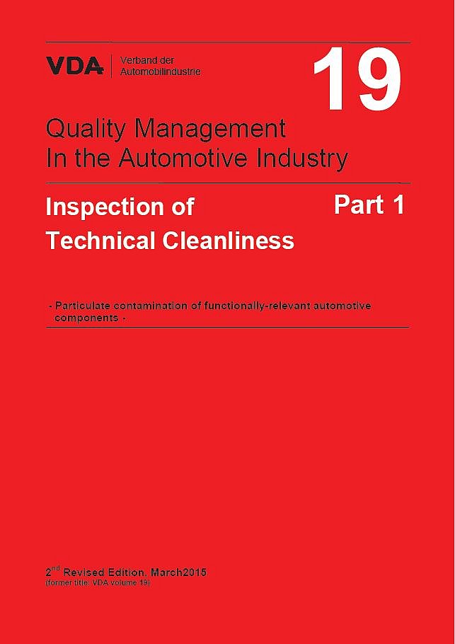 This standard was published as "VDA Volume 19 Testing of technical cleanliness - Particle contamination on functionally relevant motor vehicle parts" and supplemented in 2010 by VDA 19 Part 2 with rules for the cleanliness-relevant alignment of assembly production.