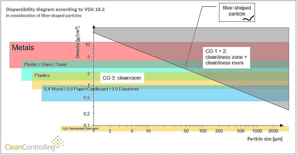When considering airborne particles, it is generally advisable to take the cleanliness levels (SaS) described in VDA 19.2 "Technical cleanliness in assembly" into account when designing the production environment. The recommended cleanliness level can be determined using the flight capability diagram, taking into account the cleanliness requirements or the permissible particle size and the particle materials. Fibrous particles are also taken into account.