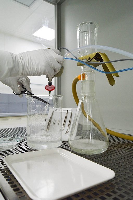 Extraction media prepared with highly efficient, manually selected filters are also essential success factors for cleanliness testing in this area of requirements. In addition to cleanliness testing of micro parts, medical products are also in the focus of this special test procedure of CleanControlling. This is especially important because often only a small number of test specimens are available for this testing.