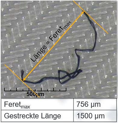 Die Typisierung und Vermessung der Fasern erfolgt im Rahmen der Standard-Sauberkeitsprüfung nach VDA 19.1 durch die lichtmikroskopische Analyse der zuvor vom Bauteil extrahierten partikulären Verunreinigungen. Mit Hilfe der Bildverarbeitung spezieller automatischer Mikroskopsysteme können verschiedene Kriterien angewendet werden.